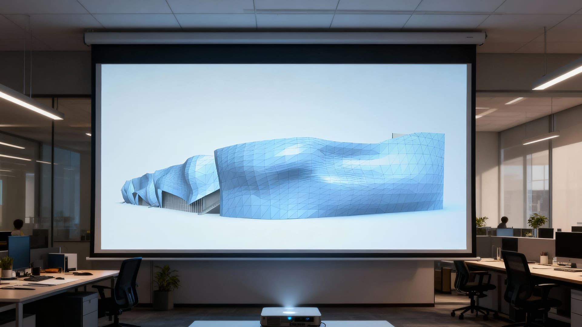 La forma vibrante dell’involucro, congiuntamente all’uso strategico dell’acciaio conferiscono al complesso un forte impatto scenico. L’involucro esterno talvolta si raccorda alla quota di terra occludendo alla vista la struttura retrostante, in altri casi invece si rigonfia, quasi sospinto dal vento, disvelando le pareti vetrate della parte basamentale.
